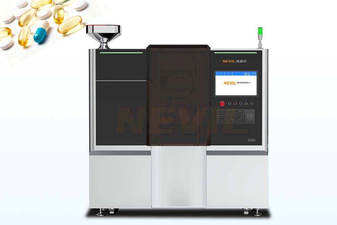 在完成药品的克重检测之后,下一道关键工序便是对所有药片、胶囊的外观展开细致入微的检查,以确保不存在磕片、黑点、异物等细微瑕疵。纳威尔360°片剂/软胶囊/硬胶囊外观检测机,正是为这一应用场景量身设计,致力于让各类外观缺陷无处藏身。